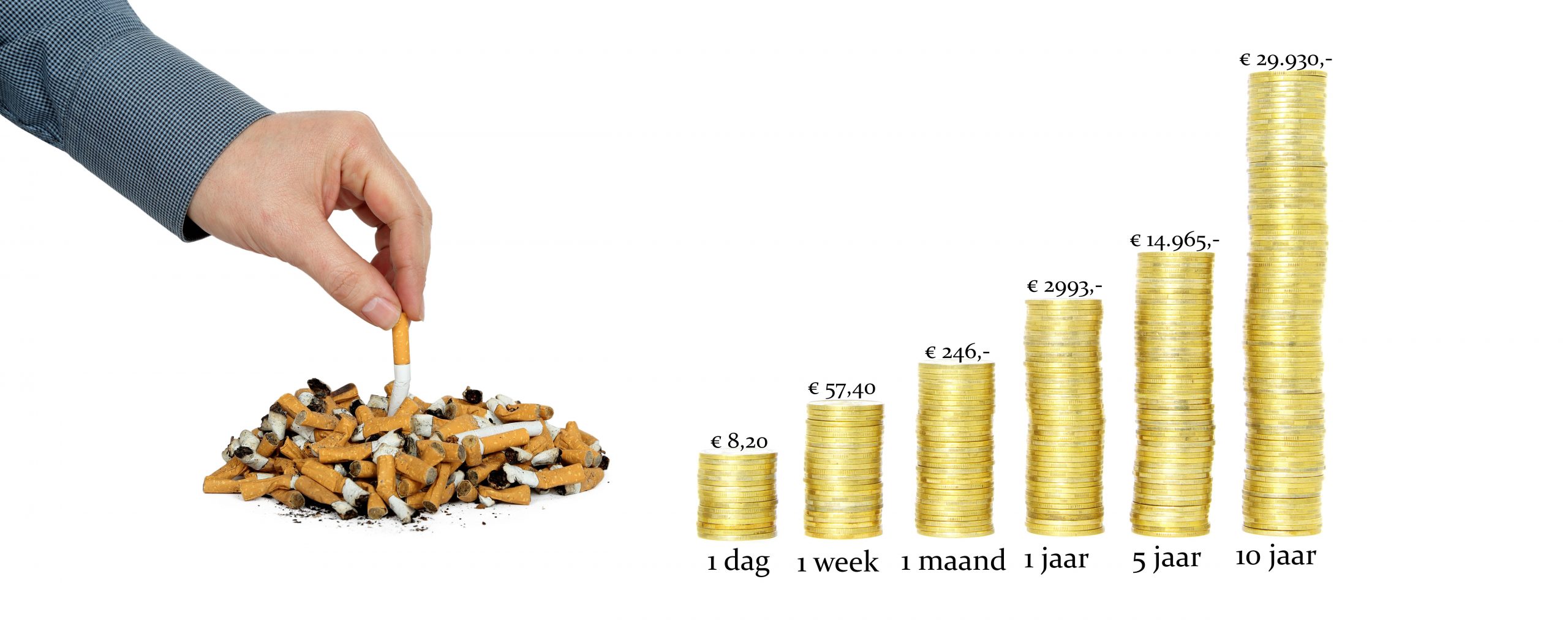 Dit zijn natuurlijk slechts voorbeelden. Het belangrijkste is: wat vindt u belangrijk en waar wilt u graag meer geld voor overhouden? Bereken hoeveel u per dag, week, jaar, enzovoort kunt besparen, en bedenk wat u hiermee zou willen doen. Dit kan werken als een goede motivator om het stoppen ook daadwerkelijk vol te houden!