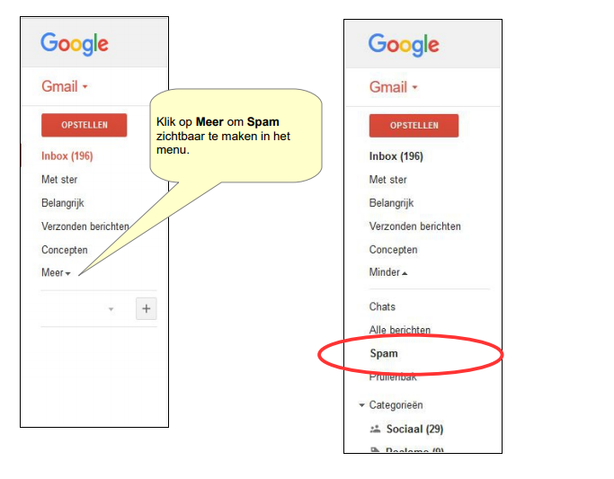 bewaren, deze plek heeft de naam Spam en is vaak verborgen onder de menu optie