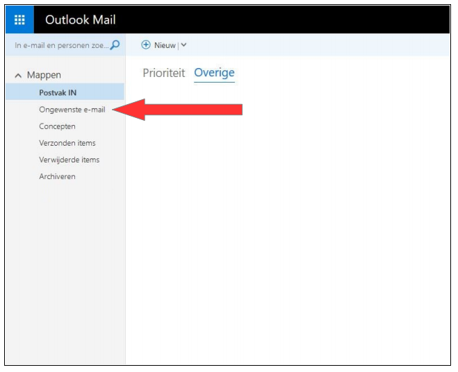Ongewenste e-mail zetten. Klik in het menu op Ongewenste e-mail om deze berichten te