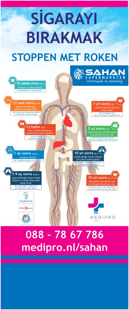 - Na het intakegesprek krijgt u 2 vragenlijsten opgestuurd: een rookprofiel en een medische vragenlijst. Er is een Turkse vertaling van deze documenten beschikbaar.
